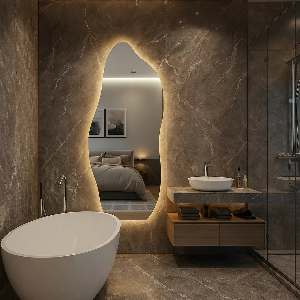 Espelho Orgânico de Chão/Parede Gigante 170x70cm com LED Touch Screen - [Luz Quente/Fria]