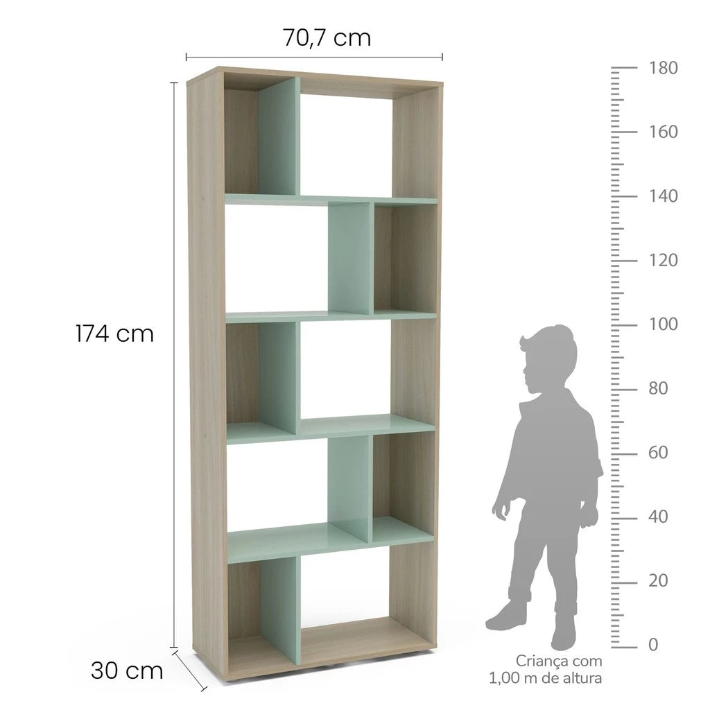 Estante Infantil Multifuncional 10 nichos Bella Casatema Natural/Menta