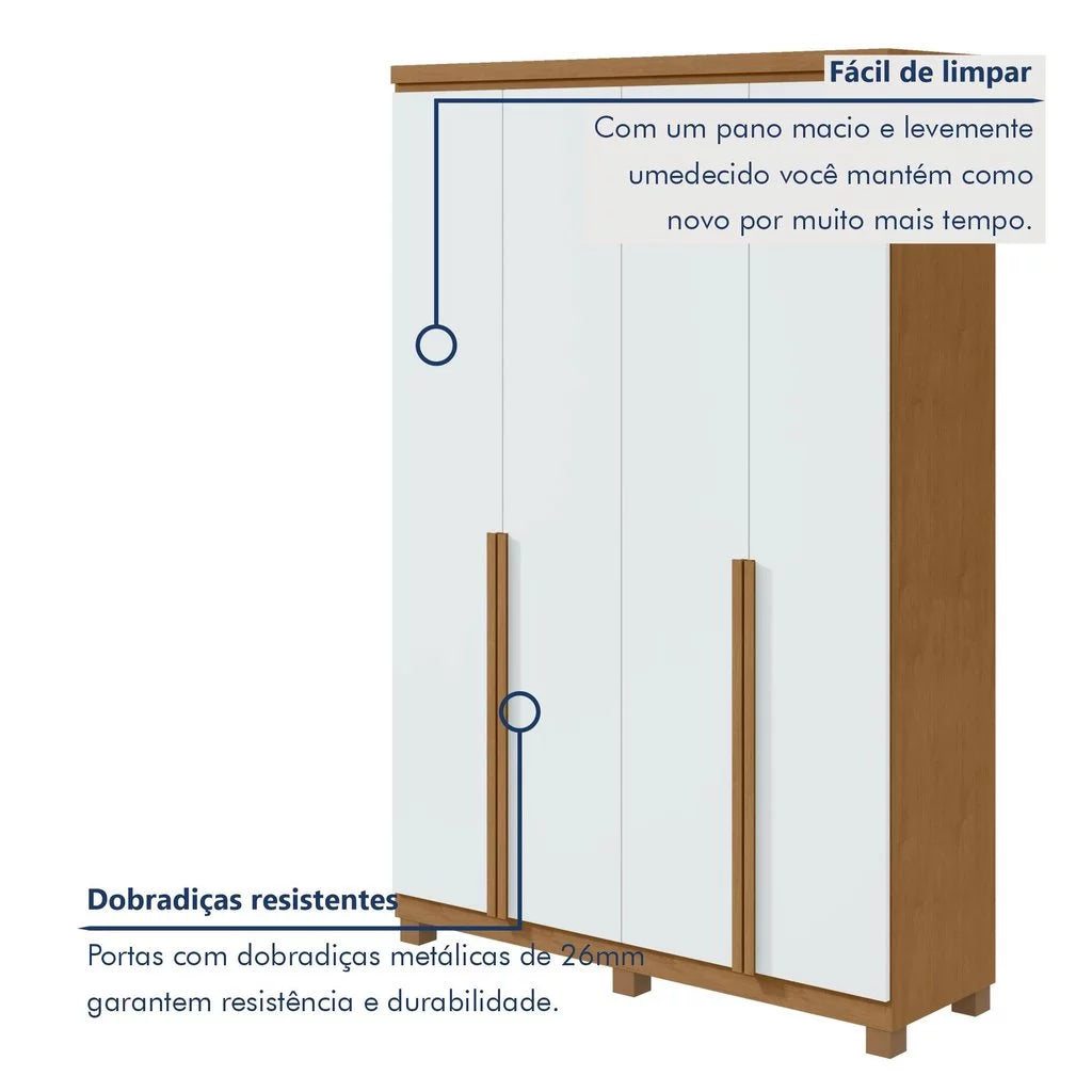 Guarda-Roupa Solteiro 4 Portas – Amêndoa Clean / Branco
